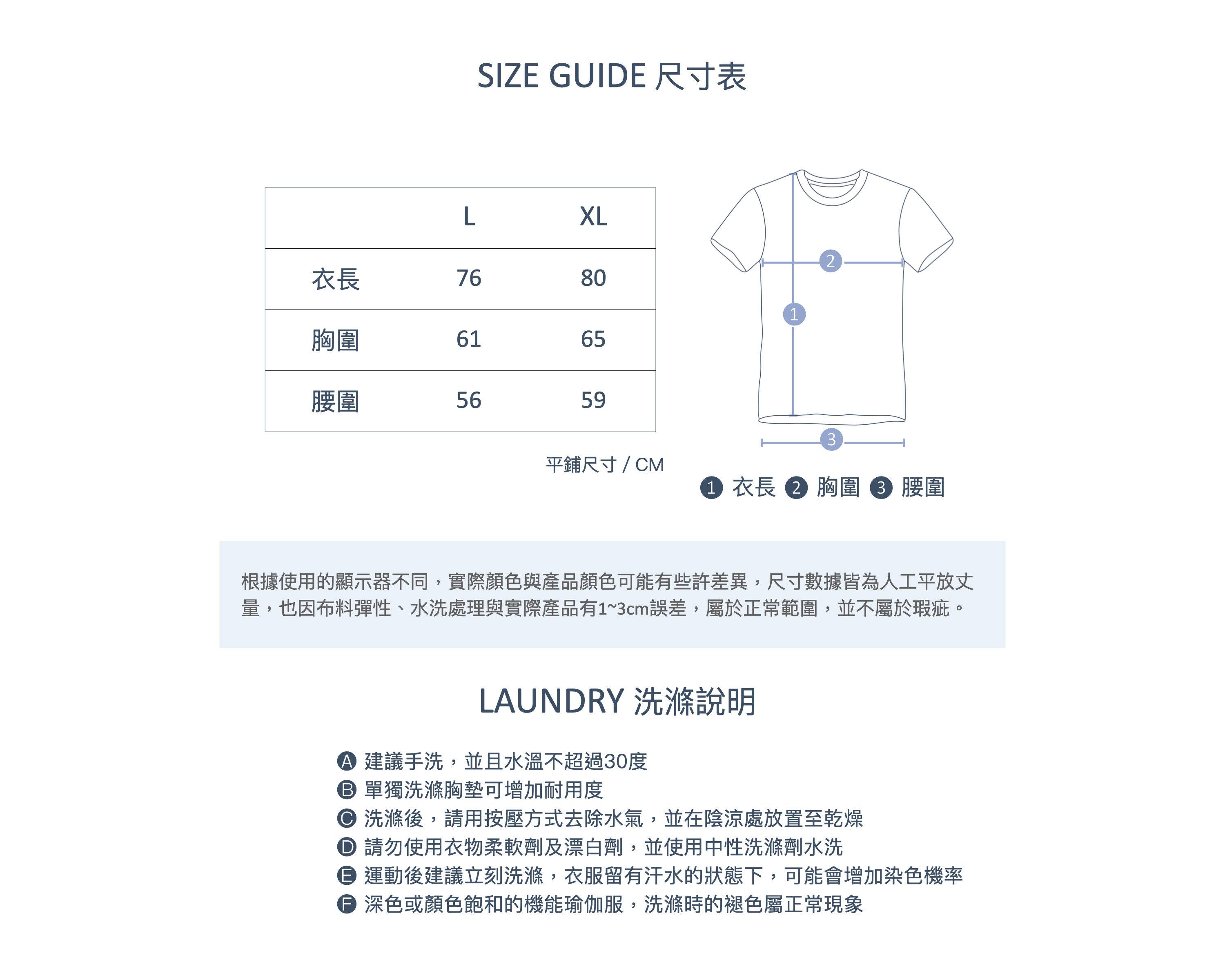 • 快乾、排汗,讓你在炎熱的天氣裡依舊保持乾爽。